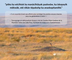« Il est essentiel d’unir nos efforts pour protéger les prairies encore intactes pour les générations à venir », affirme Candice Pete-Cardoso, directrice du Kihci-okāwīmāw askiy Knowledge Centre de l’Université de la Saskatchewan.